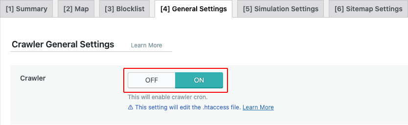 Click the [4] General Settings tab and turn the Crawler option On.